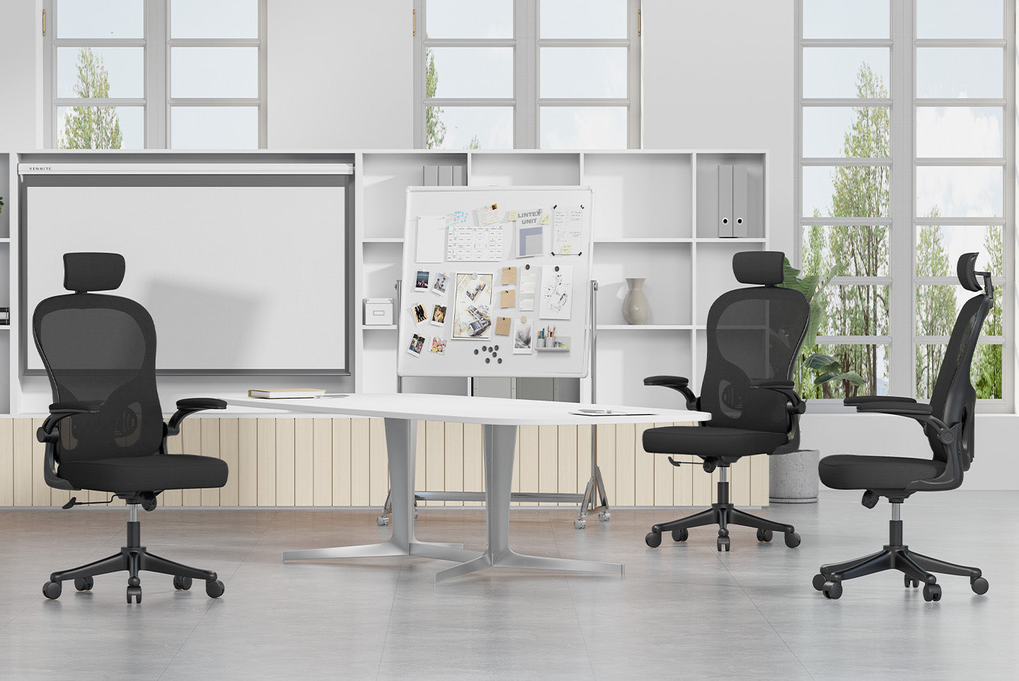 Abbassate i braccioli come supporto per le braccia durante il lavoro per alleviare la fatica. Si può ripiegare a 90 gradi e riporre sotto la scrivania.